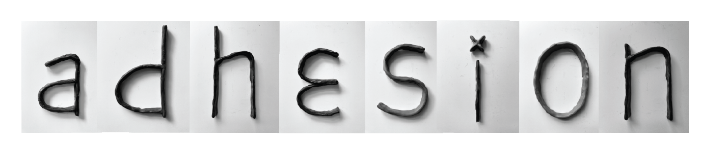 I created letterforms using a variety of tools and textures, eventually landing on a clay version of the word adhesion that stood out for its charm and shape language. After analyzing its strongest visual traits and gathering feedback, I began refining the full alphabet in Illustrator, applying those defining elements consistently across each letterform.