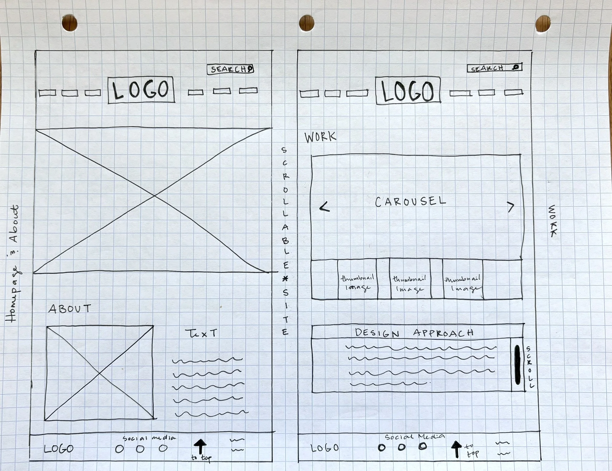 Before building the website, I created wireframes to map out the layout and structure of each page. This allowed me to focus on functionality and user flow without the distraction of design details. Wireframing helped identify key content areas, prioritize information, and ensure a cohesive navigation system.