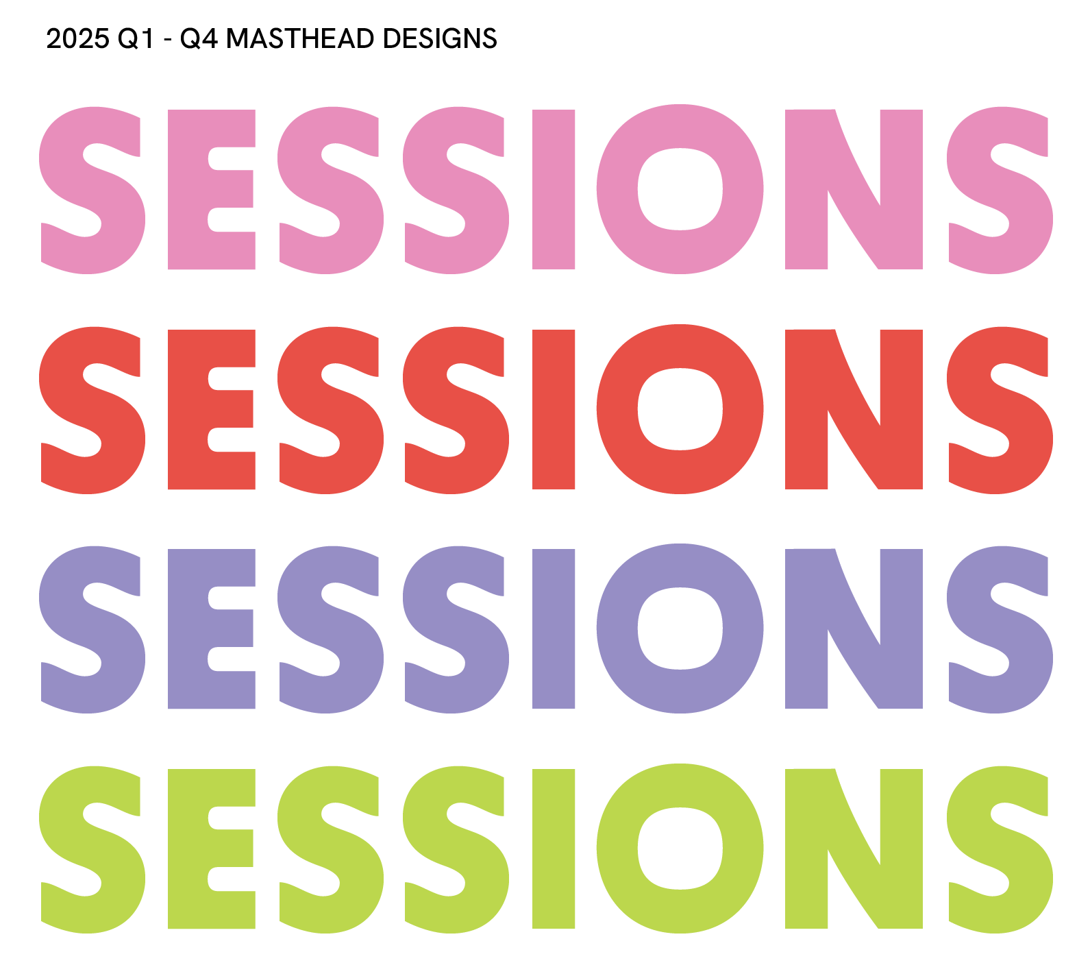 The Sessions masthead is set in BD Supper Bold, chosen for its playful curves and approachable feel, which reflect the welcoming nature of the skating community. Positioned as a stand-alone element on each cover, the masthead allows the featured imagery and quarterly theme to take center stage. The name Sessions references the casual, communal gatherings that define skate culture—capturing both the energy of the moment and the ongoing passion skaters share for their craft.