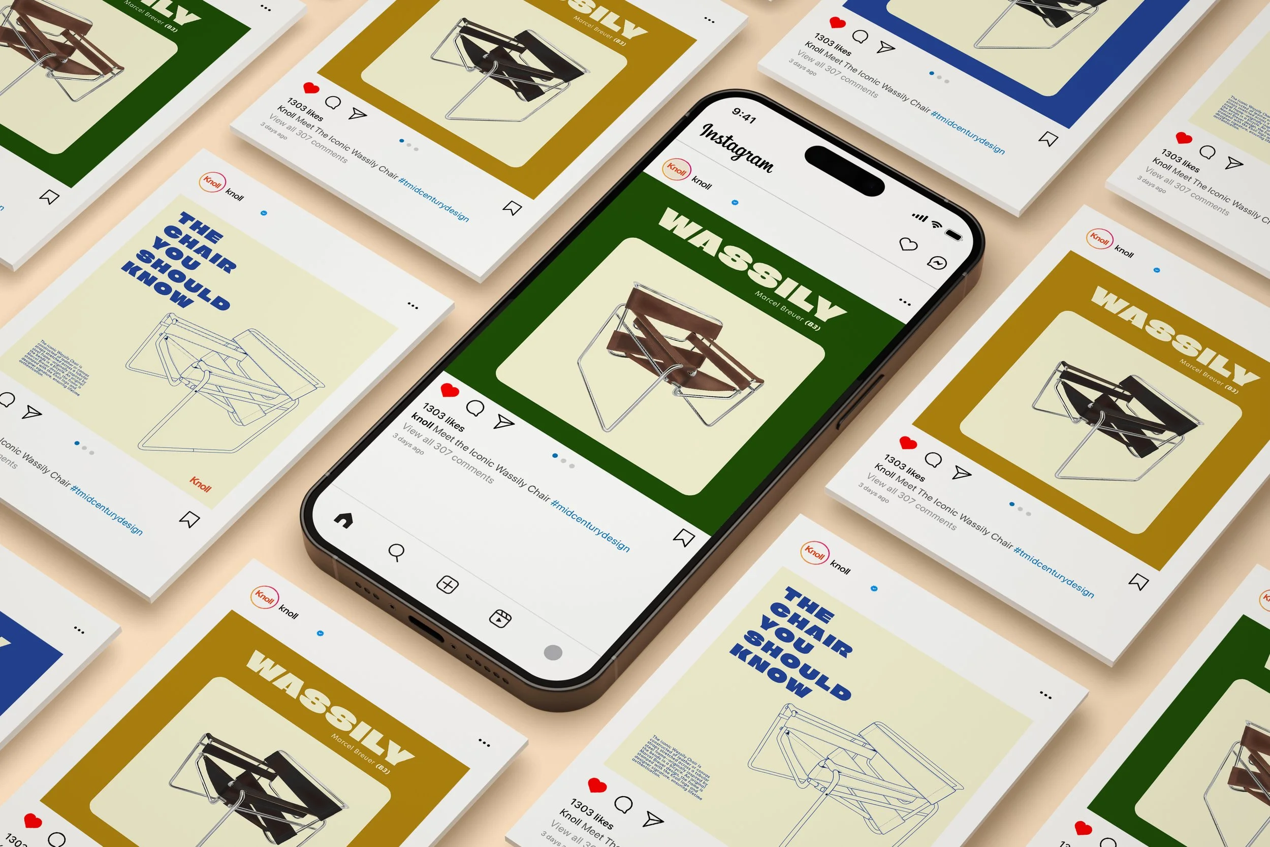 This poster series serves as the anchor of a modern branding campaign for the Wassily Chair by Knoll, celebrating its Bauhaus roots while introducing it to a contemporary audience. The posters highlight minimalist design, typographic clarity, and a custom color palette to reflect both heritage and reinvention.